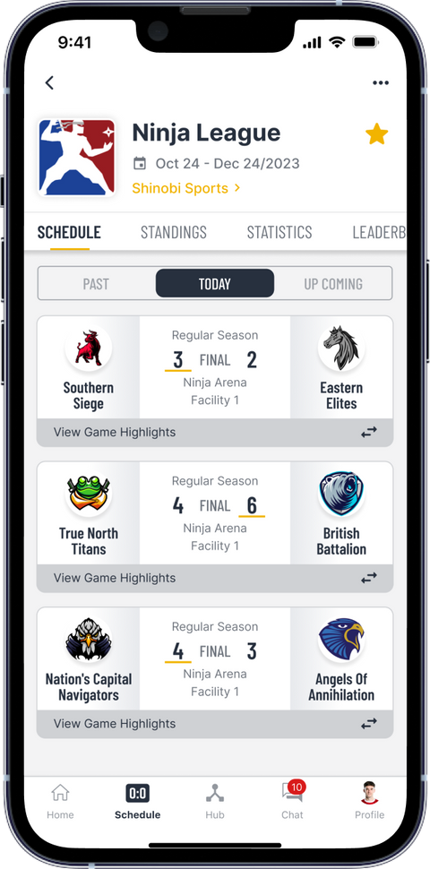 Enhance your experience on the go with the mobile app! Enjoy real-time updates, reminders, and instant messaging. Access schedules, career stats, standings, and highlights—all at your fingertips.