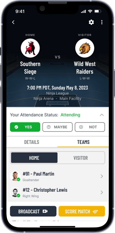 For the best user experience, enable notifications when you download our mobile app. Stay informed with real-time push notifications for game reminders, attendance updates, final scores, and new team invites.