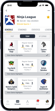 Enhance your experience on the go with the mobile app! Enjoy real-time updates, reminders, and instant messaging. Access schedules, career stats, standings, and highlights—all at your fingertips.