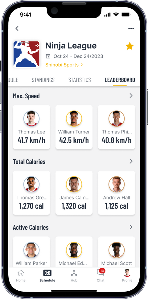 Enhance your experience on the go with the mobile app! Enjoy real-time updates, reminders, and instant messaging. Access schedules, career stats, standings, and highlights—all at your fingertips.